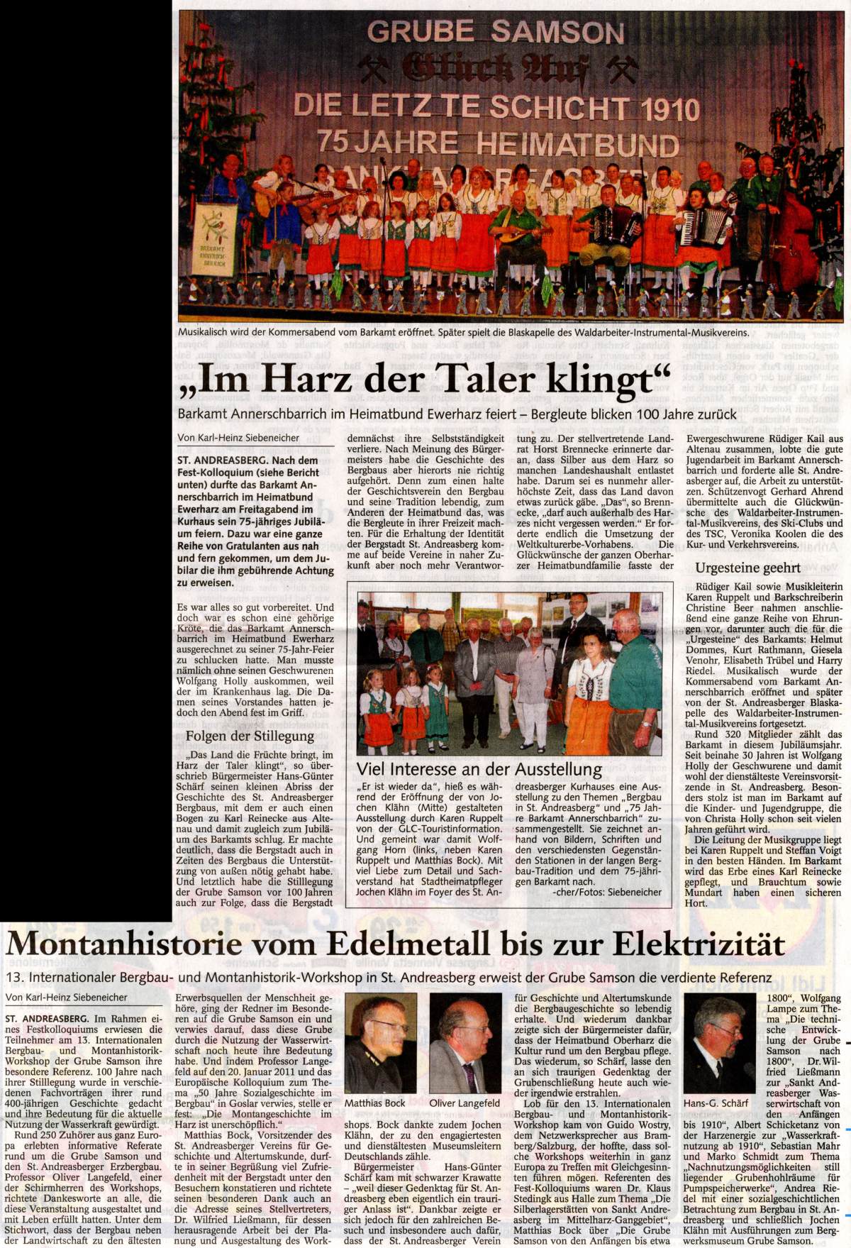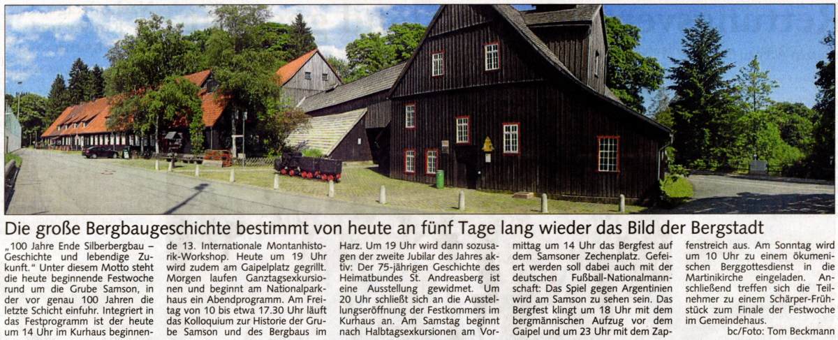 Presseartikel zum Bergbau-Workshop und Bergfest